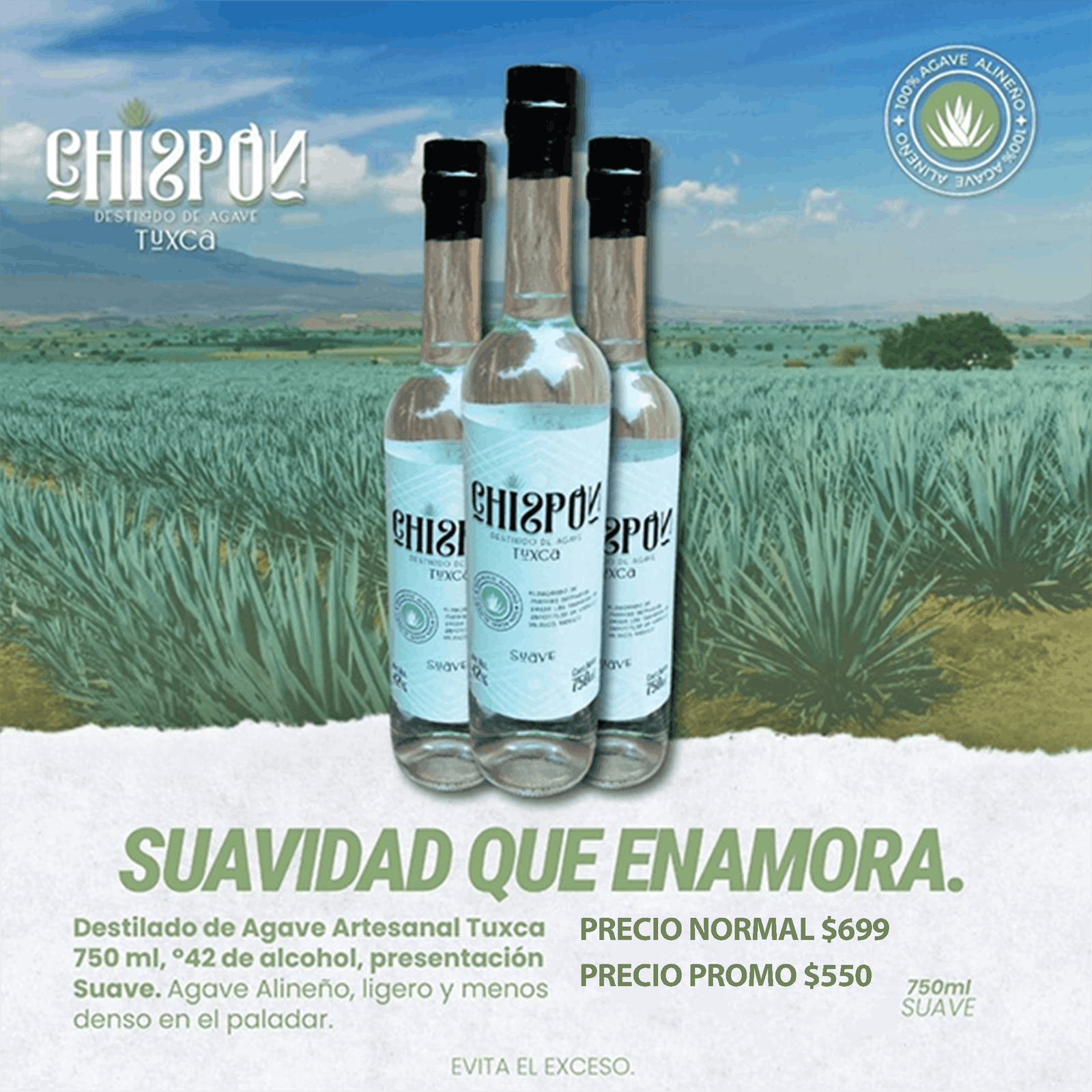 Chispón Destilado de Agave Tuxca Suave 750ml
