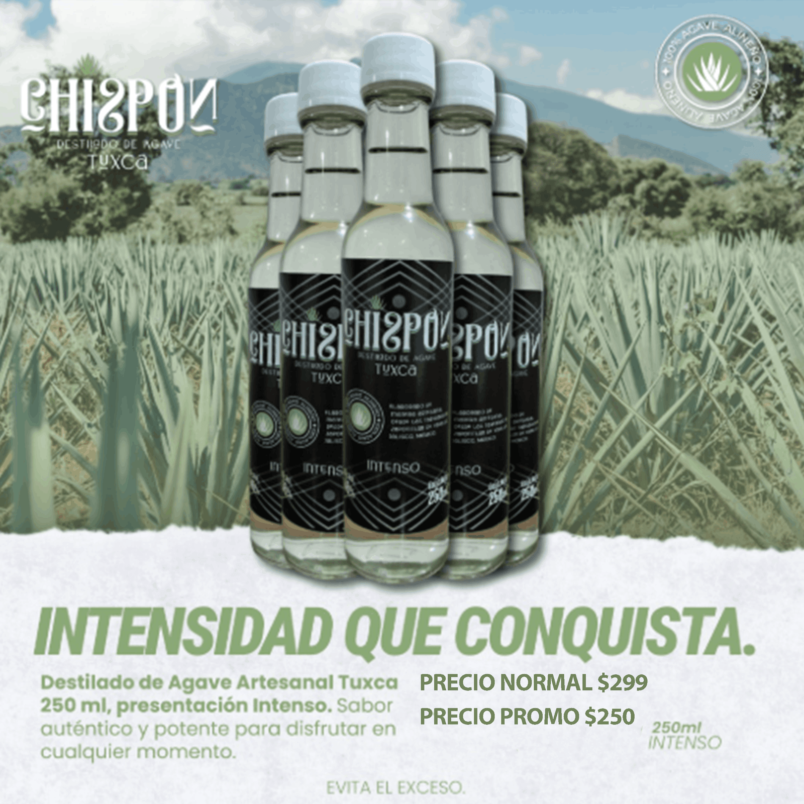 Destilado de Agave Artesanal 250 ml (Intenso)